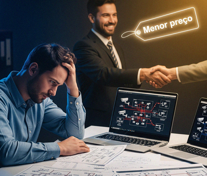 Quando um projeto é decidido puramente pelo preço de componentes isolados, todos perdem. O integrador porque reduz drasticamente sua margem, precariza sua mão de obra e fica sem recursos para um pós-venda de qualidade. O cliente final porque recebe um ‘Frankenstein’ de equipamentos que não conversam entre si, gerando custos ocultos com gerenciamento, falhas de comunicação e uma experiência de usuário ineficiente.