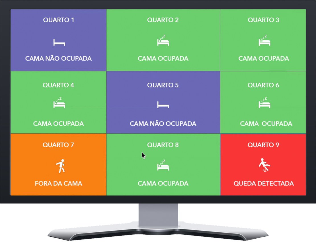 Trata-se de um sistema inteligente com sensores e câmeras que usam IA para monitorar movimentos em tempo real, identificar padrões anormais e alertar automaticamente os profissionais de saúde ao menor sinal de queda ou risco iminente.